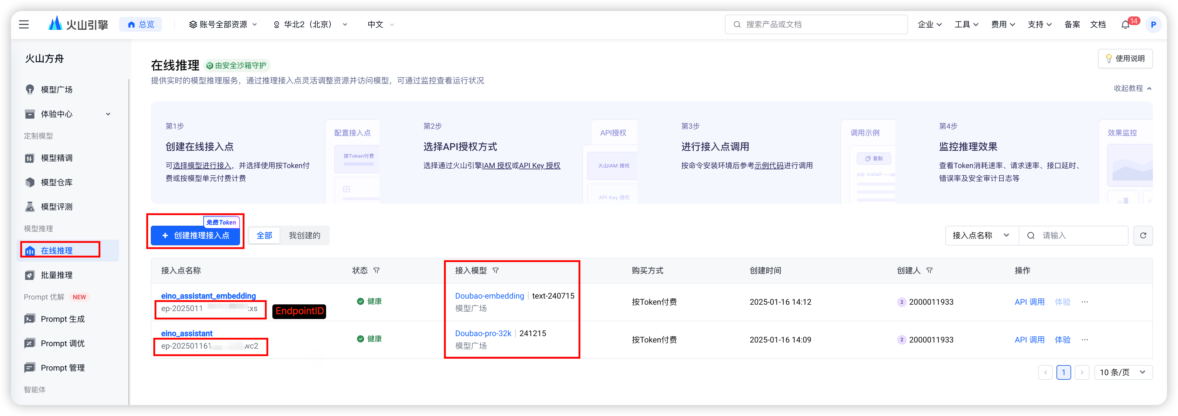 - Create doubao-embedding-large as the vectorization model for building the knowledge base, and create doubao-pro-4k resources as the model when the agent is in conversation.