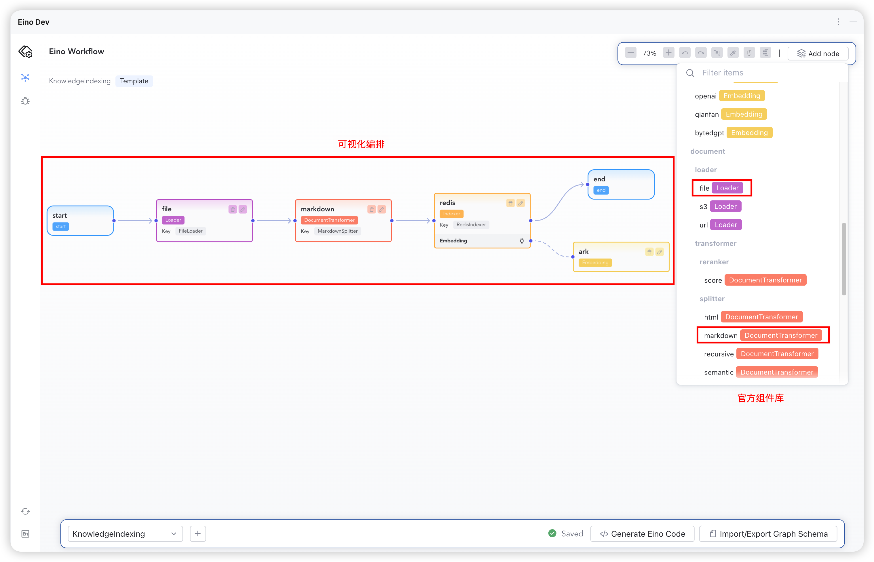 - This example can directly copy the Graph Schema from eino/knowledge_indexing.json to quickly build the graph in the example