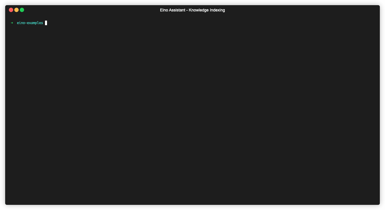 cd xxx/eino-examples/quickstart/eino_assistant # 进入 eino assistant 的 example 中 # Modify the required environment variables in .env (LLM information, trace platform information) source .env # As the example Markdown file is stored in the cmd/knowledgeindexing/eino-docs directory, and the code specifies the relative path eino-docs, you need to run the command in the cmd/knowledgeindexing directory cd cmd/knowledgeindexing go run main.go