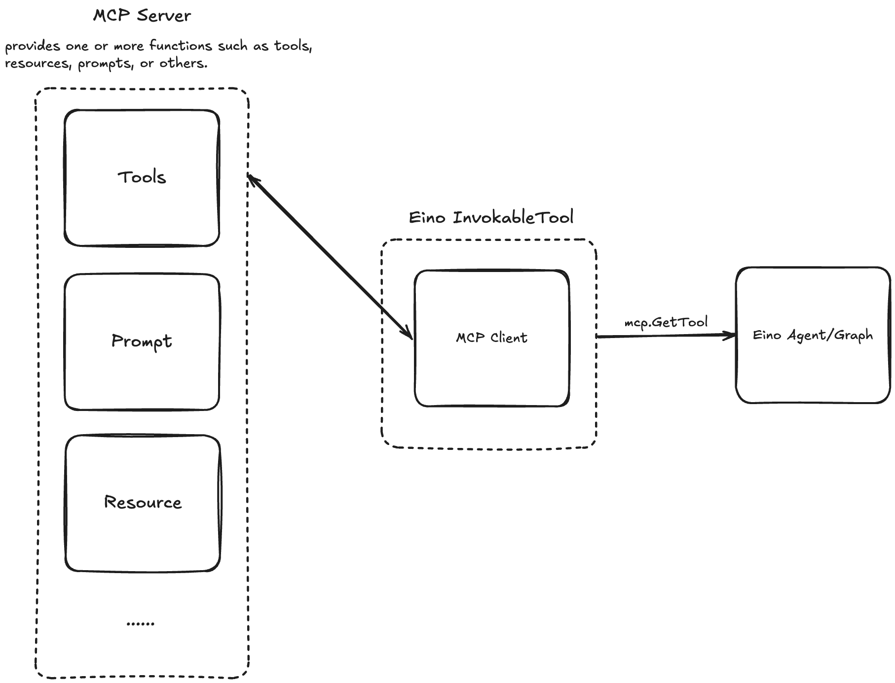 本节介绍 MCPTool 的封装,封装实现了 Eino InvokableTool 接口(Eino: ToolsNode 使用说明)。